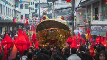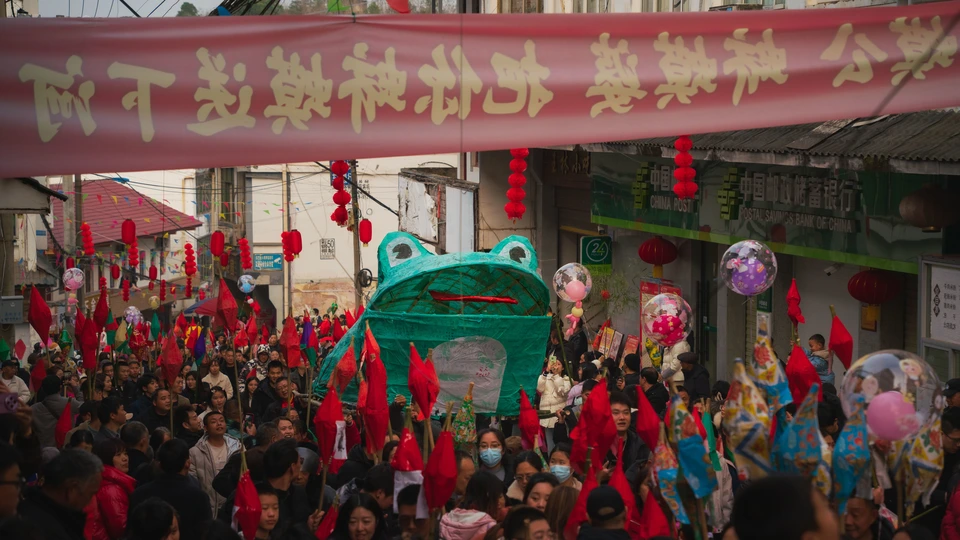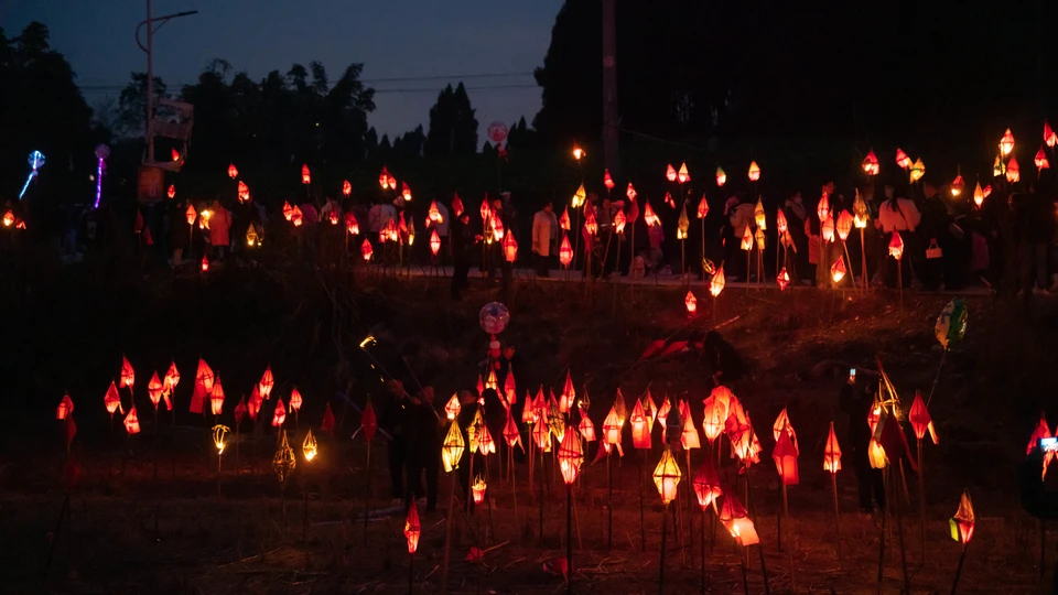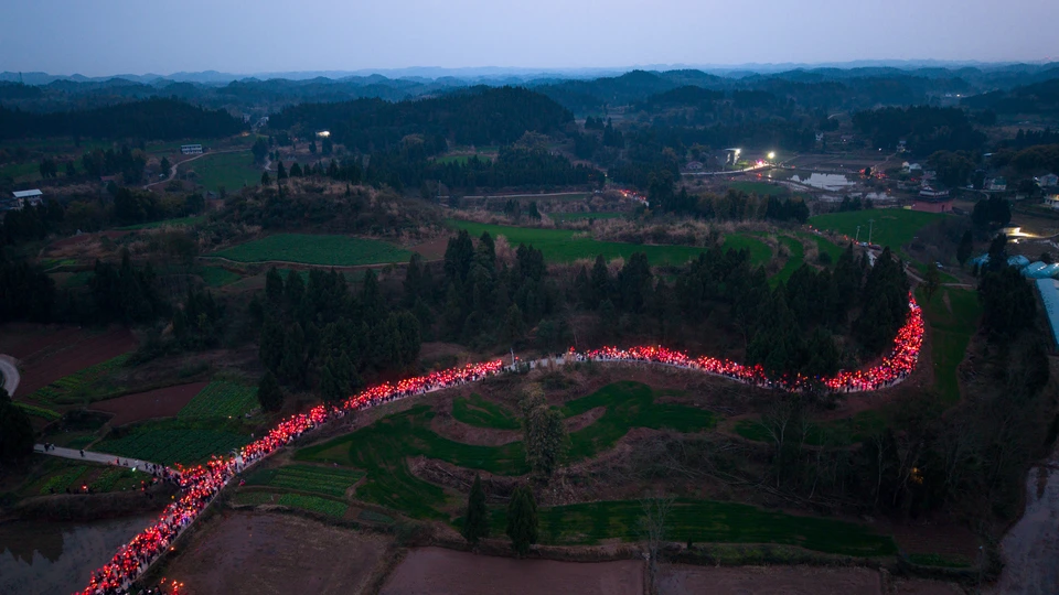 三会镇“送蛴蟆”是川北地区传承数百年的独特民俗活动,盛行于南充市嘉陵江流域一带,尤以农历正月十四为高潮。蛴蟆(当地方言指蟾蜍)被视为瘟病与灾厄的象征。相传明清时期当地瘟疫肆虐,村民以竹编“蛴蟆灯”点燃游村,后将灯插于田间或投入河中,寓意驱瘟送灾、祈求五谷丰登。 活动当日,村民手持自制蛴蟆灯,组成灯火长龙,高唱民谣“十四夜,送蛴蟆,蛴蟆公蛴蟆婆,送到河那边吃酸醪糟……”,沿乡间小道巡游至水畔,最终将灯焚毁或放流,象征灾病随水远去。如今,这一习俗不仅承载着祛邪纳吉的古老信仰,更成为凝聚乡情、传承文化的纽带,被列入省级非物质文化遗产名录。每年活动吸引数千游客参与,传统竹灯工艺亦焕发新彩。