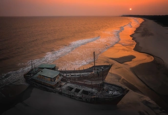 两艘曾经共同在大海中驰骋的渔船,完成自己的使命后静静的在沙滩上相互依偎。