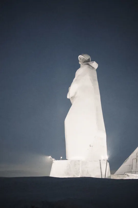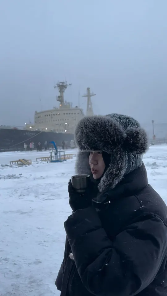 从墨西哥湾远道而来的北大西洋暖流让这座北极港口中年期不冻—海温保持在2摄氏度左右,虽冰冷刺骨,但在极寒气温面前俨然如同温泉。 今天风雪很大,我们走路参观了城市地标,打卡了很多“最北”。 阿廖沙雕像:纪念二战期间保卫苏联北极地区的士兵、水手和飞行员而建,表达了人们对战争英雄的无限敬意和怀念。廖沙雕像为一名身披斗篷、手握步枪,面向西方,即当年德军入侵的方向,仿佛依然在守护着这座城市。 列宁号核动力破冰船:世界上第一艘采用原子能反应堆产生能量行驶的船只,退役后作为博物馆供人参观。现在永远停靠在这里。 以及#冻土餐厅 🍕好吃