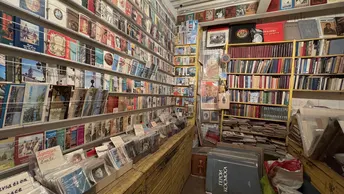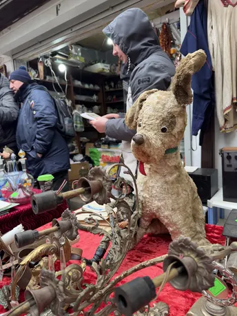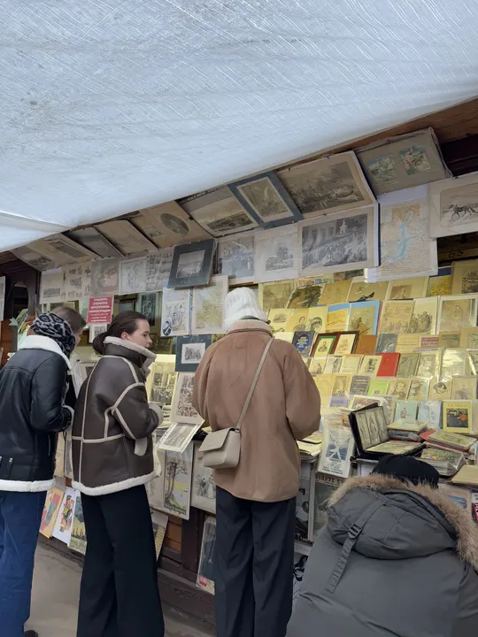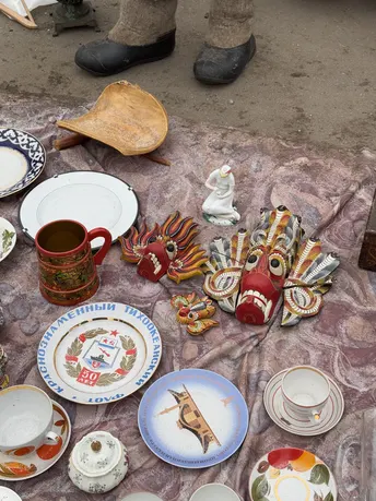 每到一个地方都会去跳蚤市场淘点宝贝。蒙自有大树寨,凯里有绣里淘,曼谷有乍都乍,而这里则叫作#一只蚂蚁,有趣的名字。 早上,我们比往常起的早一些,吃饱后前往这个市中心外的二手市集。琳琅满目,很多当地人。珍奇的皮毛大衣、复古珠宝、旧货家居,还有很多徽章、摆件,以及上个世纪的明信片,有的背面还写满了文字成为信件。还有一些二手相机、宝丽来和邮票收藏,不知它们的主人在拥有它们时,度过了怎样的时光。 我淘了一些手工上色的beauty(美人)明信片,小时候翻家庭相册时发现以前的老照片被美芬用水彩笔涂上了颜色,她说那个年代还没有彩色相机,所以她自个上了色。没想到今天的异乡也能遇到多年前有着同样想法的陌生人。颜料干涸后变得立体,把旧了蒙上一层灰白的纸张,衬托出不一样的质感。 这次在一个老伯的摊位前驻足很久,他有丰富的徽章收藏:军事的,太空探索的,卡通的,前苏联城市的……他非常用心地用翻译软件给我一个一个介绍感兴趣的小徽章,(一种真诚的带货方式⌯oᴗo⌯),展示他的collection,他说和哥哥从二十几岁就开始收藏了。 路过一个大爷的小店,他长得像圣诞