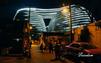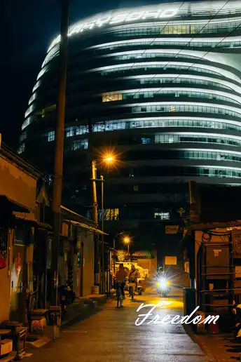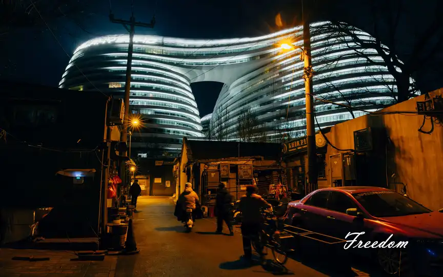 远处宛如未来科技的银河SOHO跟眼前狭窄古老的胡同形成了鲜明的对比。😏😏😏