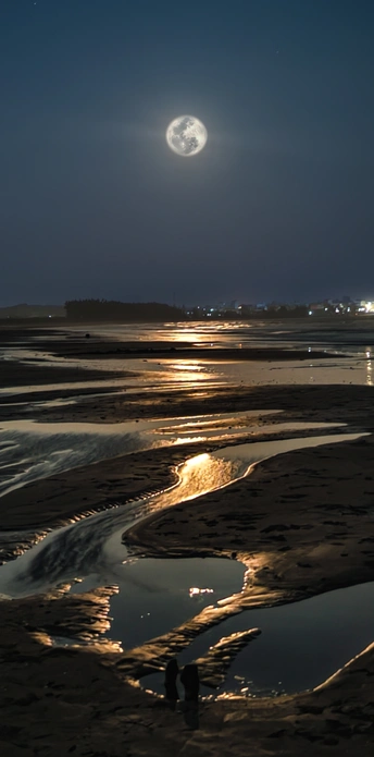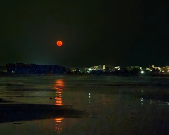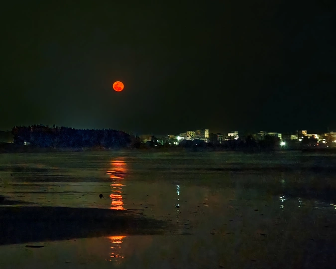 俗话说十五的月亮十六圆,用手机拍摄的“血月”和皎洁月光下的海滩。