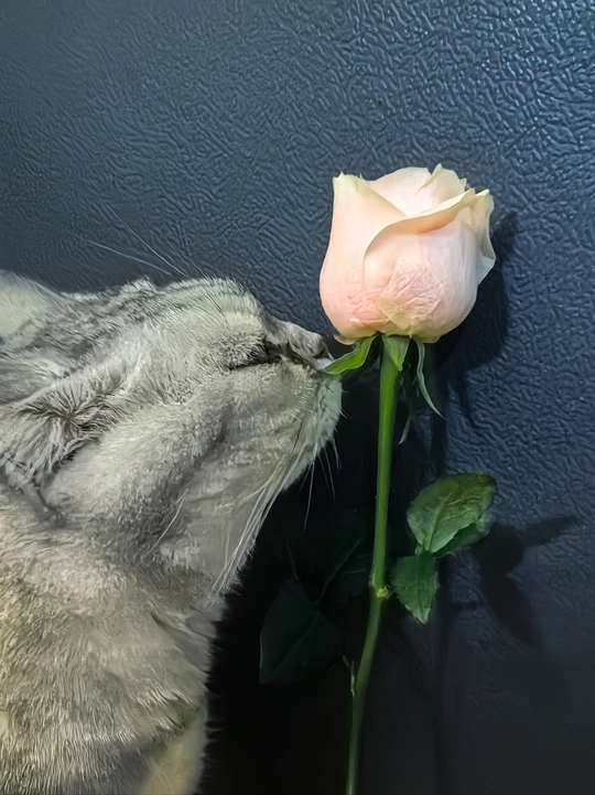 利用室内光,低角度拍摄了暗背景下猫咪嗅玫瑰花的场景,表现了花朵的质感,香气和猫咪的神态,顺祝大家情人节快乐。