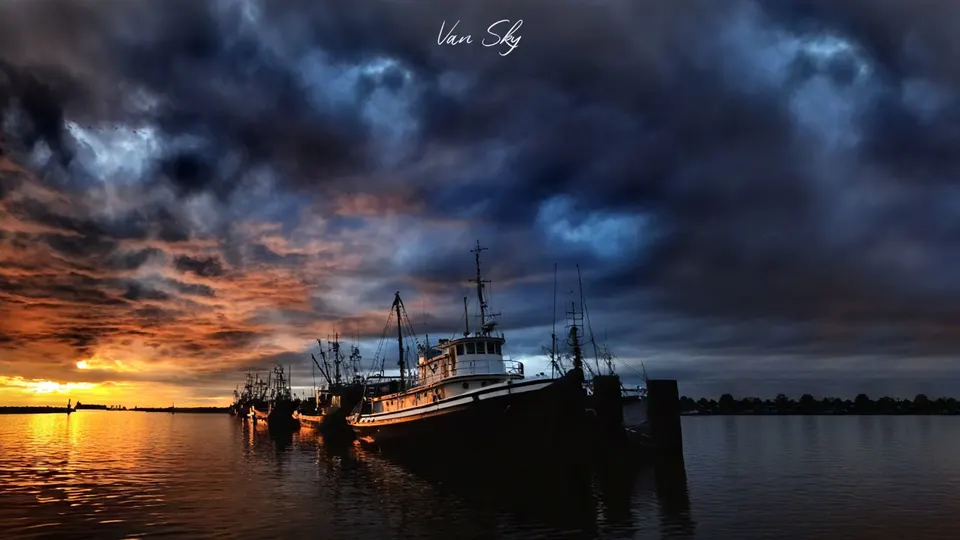 夕阳下的温哥华渔人码头,天空被金橙色的余晖点燃,映照着停泊的渔船,仿佛诉说着无数海上的故事。微风拂过水面,倒映出这片绚烂的光影,如梦似幻。此刻,时间仿佛放慢了脚步,让人沉醉在这片宁静而震撼的景色之中,这一刻,海浪不再汹涌,风也变得温柔。日落不是终点,而是家的方向。