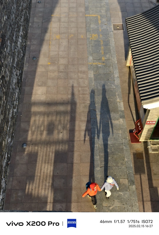 俯拍被夕阳拉长的影子,很有戏剧性。