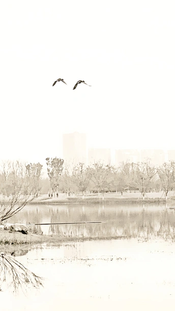 中国风飞鸭单色摄影