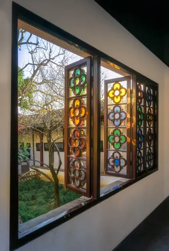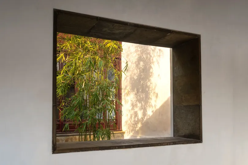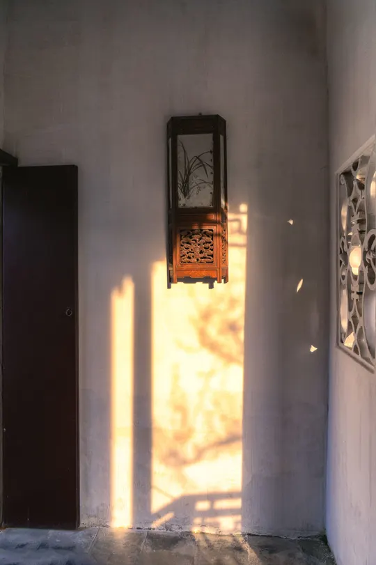 夕光鎏金漫粉墙,疏影横斜穿花窗。池亭倒影融琥珀,朱栏半暖半凝霜,飞檐挑破暮云绛,一隙流光锁沧浪。 Edit by Deepseek Shot by Me