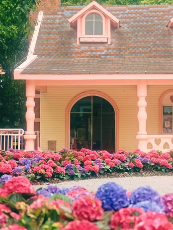 闯入童话小屋,粉色与淡黄交织着温柔。门前绣球盛放,缤纷色彩晕染出浪漫日常,每朵花都藏着甜蜜梦。