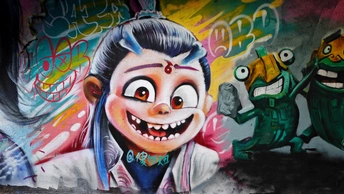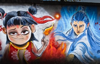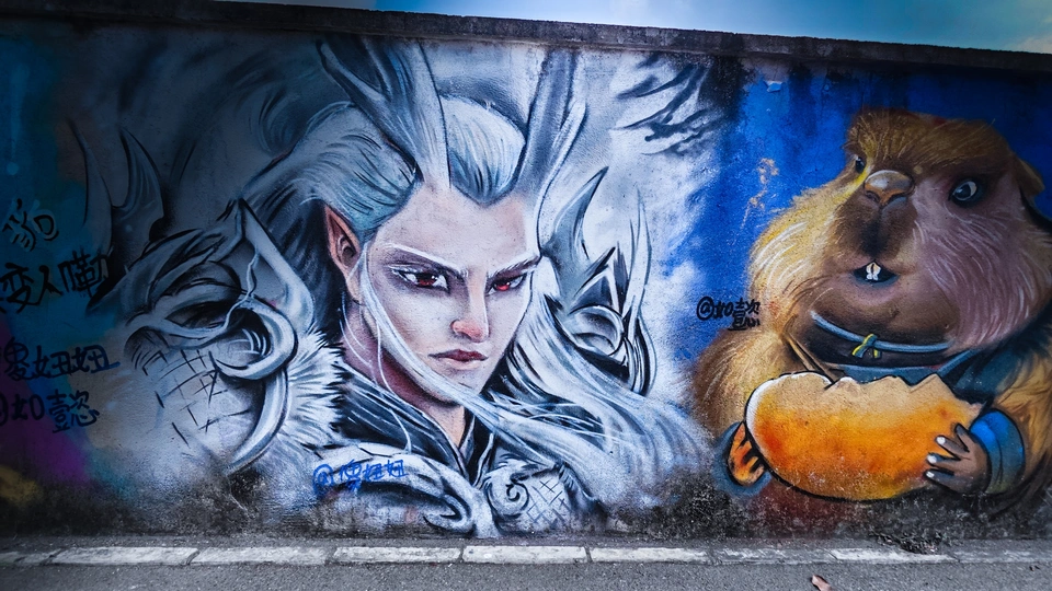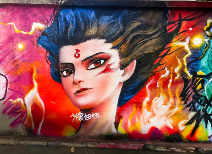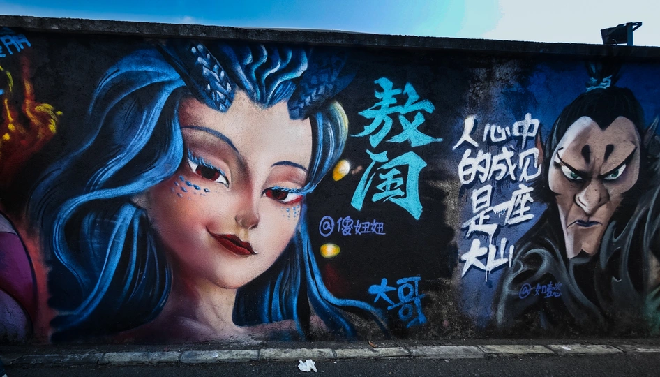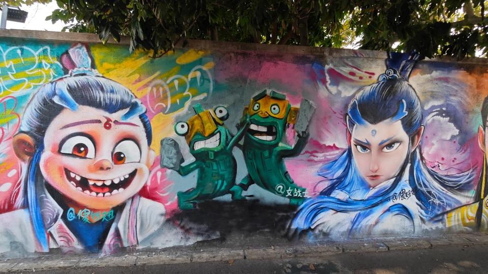 三个小姑娘的墙绘作品火遍全城👍👍👍