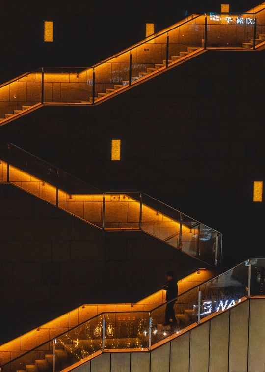 夜幕如墨,这层层叠叠的楼梯宛如夜的诗篇;暖黄的灯光沿着阶梯蜿蜒,似灵动的音符在黑暗中跳跃;光影交织间,勾勒出建筑的线条与轮廓,为夜增添一抹温柔的诗意。每一步的前行,都似踏入梦幻之境,沉醉于这独属于夜梯的浪漫与美好。