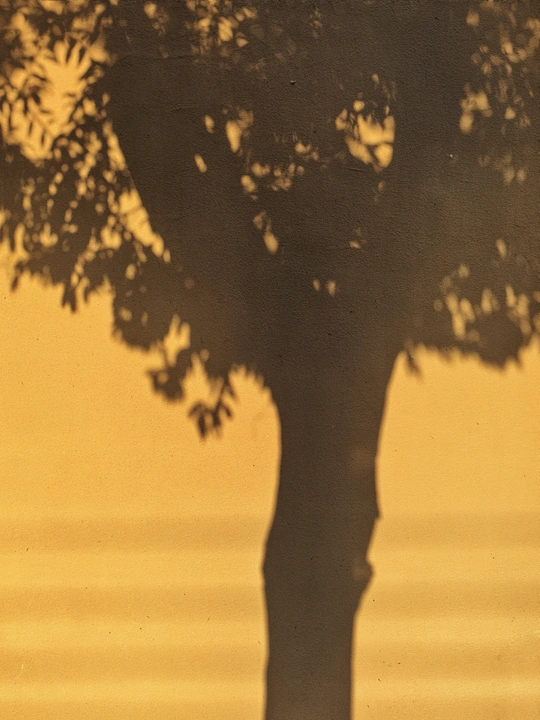 阳光透过树叶,在墙面上留下树影斑驳的画卷,每一片叶子都被细细勾勒,如同大自然的神秘面纱。