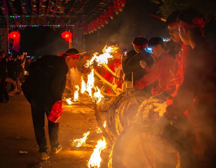 揭阳官硕乡的火笝节(也称为火把节)是中国广东省揭阳市的一个传统民俗节日,通常在农历正月十五(元宵节)或其它特定日期举行。这个节日具有浓厚的地方特色,融合了潮汕地区的传统文化和民间信仰。