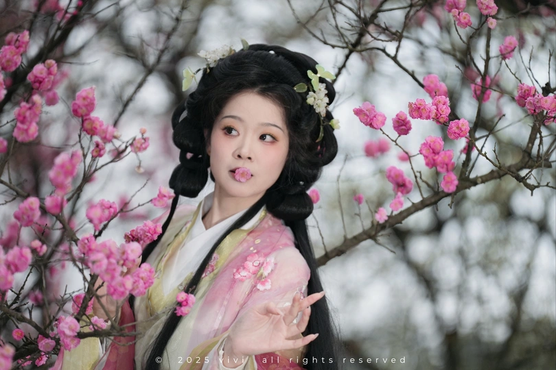 在成都植物园偶遇古装小姐姐,于是拍了这一组图。 在雨水节气,天空飘着微雨,一袭华服,巧笑倩兮,美目盼兮,闻着梅园的清气,感受着这世间的美~