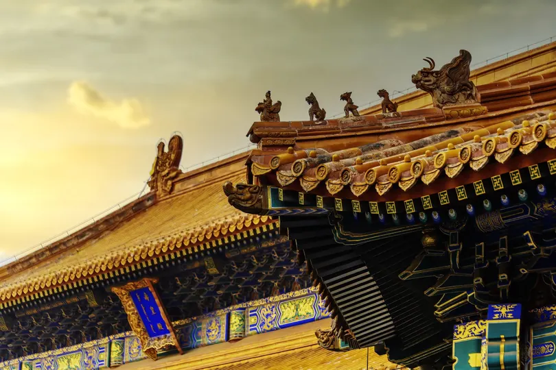 寿皇殿耸,脊兽列陈。琉璃瓦上,瑞兽栖身。或蹲或立,形态各异,威严肃穆,气宇轩昂。望天犼昂首,似向苍穹问古今;嘲风扬首,欲探风云晓世事。龙子诸兽,各显神通,护佑殿宇,千载安宁。斗拱彩画,与之辉映,共彰皇家威严之象。岁月悠悠,脊兽见证,皇家祭祀之庄重,历史传承之厚重。风雨侵蚀,其韵犹存,古建瑰宝,熠熠生辉。瞻彼脊兽,思古之情油然而生,赞其工艺,叹古人智慧之高深,愿其永屹,续展华夏建筑之奇韵。