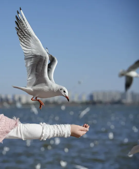 滇池的海鸥真的太幸福了,每天都有无数的人在喂吃的。
