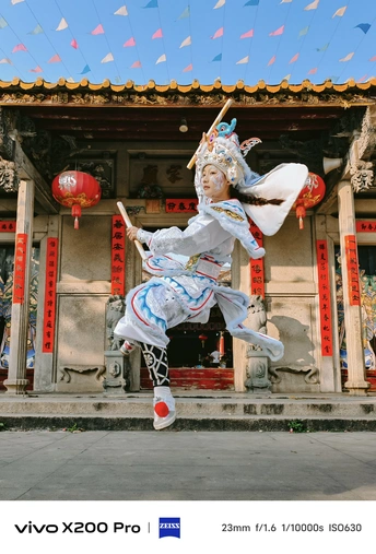 在这片五彩斑斓的天空下,英歌舞的舞者以矫健的身姿跃起,传承着悠久的传统与热血的文化。