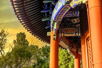 傍晚,我登上景山的富览亭,只为邂逅那一场日落盛景。 夕阳悬于天际,将天空晕染得一片火红,那绚烂的色彩如同一曲宏大的乐章奏响在云端。富览亭的飞檐在余晖下勾勒出古朴的剪影,似在静静诉说着岁月的故事。 凭栏俯瞰,京城的街巷在落日的轻抚下,蒙上了一层梦幻的薄纱。远处的高楼大厦也变得柔和起来,与古老的亭台一同沐浴在这橙红的光里。 随着太阳缓缓西沉,光芒渐弱,却在隐没前留下一抹醉人的紫霞。富览亭依旧伫立,守着这日落的浪漫与宁静,也守着我心中这份震撼与感动。