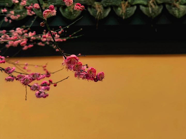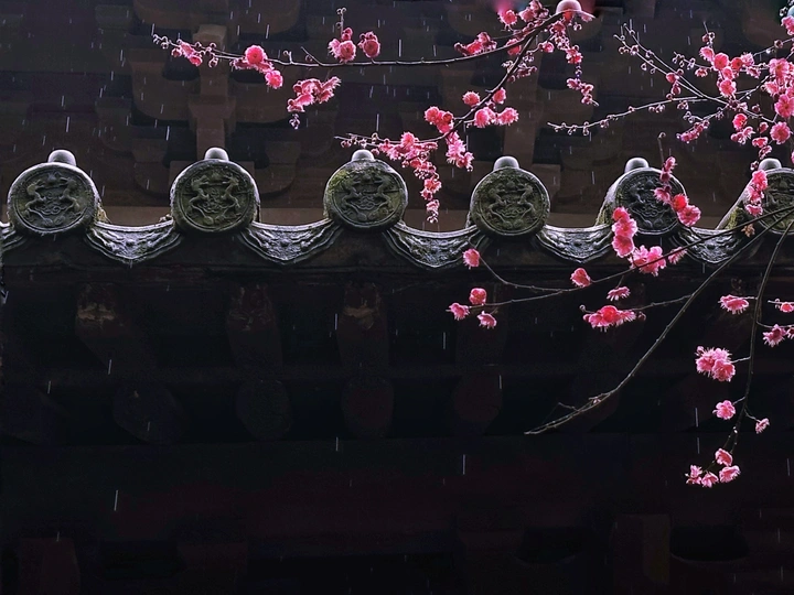今天的冬天雨水不多,特意等了个雨雪天去高丽寺拍梅花。寺内黄墙红梅,灯影婆娑。红梅傲然绽放以热烈的姿态迎接春天,春雨润花色,就是道不完的江南梅花意。