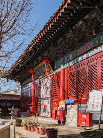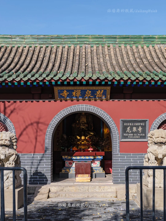 在河北霸州的信安镇,有一座历经千年的古寺——龙泉寺。它坐落在群山怀抱中,时光仿佛在这里凝固,每一砖一瓦都散发着岁月的温润与深邃。这座寺庙始建于辽代,虽历经沧桑,但依旧保持着那份古老的庄严与神秘。 踏入龙泉寺,眼前便是那座大殿,沉静且巍峨,仿佛诉说着千年的风雨故事。大殿的屋顶覆盖着翠绿的琉璃瓦,阳光洒下,微风拂过,琉璃瓦上闪烁着淡淡的光辉,似乎在低语,诉说着不为人知的传奇。殿内正中的释迦牟尼佛庄严端坐,两侧的十八罗汉栩栩如生,每一尊佛像似乎都在默默守护着这片圣土。 值得一提的是,龙泉寺的建筑技艺让人叹为观止。大殿的屋顶以四坡飞檐为特色,每一根榫卯的连接都精巧无比,整个建筑没有一颗铁钉,所有结构都通过榫卯工艺紧密结合,展现了古人非凡的智慧与匠心。寺内的墙壁上,还嵌有三十三尊观音像,每一尊观音都显得慈悲庄严,凝视着每一位前来朝拜的信徒,仿佛能洗净一切尘虑,带来无尽的安宁。 在这片古老的庙宇中,每一步都能感受到岁月的积淀,仿佛与时光融为一体。无论是木雕的精美,还是石刻的细腻,都透着一股浓浓的历史感和文化底蕴。走在这座古寺的回廊中,耳边回荡着僧侣的钟声,那是时间在这片圣地上缓缓流淌的声音。