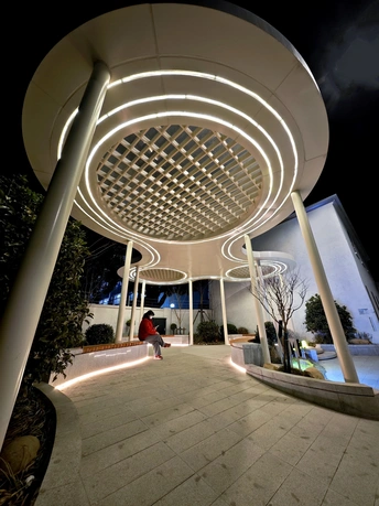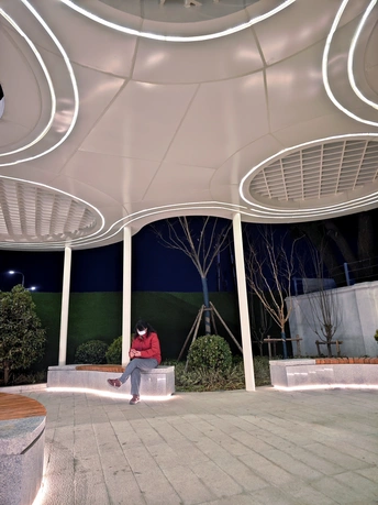 夜幕低垂,小区的景观建筑在灯光的映衬下,展现出别样的风情与魅力。月光如水,轻柔地洒在每一寸土地上,为这静谧的夜晚披上了一层银纱。 步入小区,首先映入眼帘的是那座古色古香的凉亭。凉亭的檐角挂着一串串精致的灯笼,暖黄色的灯光透过薄纱灯罩,散发出柔和而温馨的光芒,仿佛在低语着古老的故事。四周的花木在灯光的照耀下更显葱郁,偶尔传来一两声虫鸣,更添了几分生机与野趣。 沿着蜿蜒的小径前行,一座小巧的喷泉映入眼帘。喷泉在夜色中欢快地跳跃着,彩色的灯光随着水柱的起伏变化,映照出一片斑斓的光影世界。水珠在空中划出一道道优美的弧线,最终轻轻落入池中,发出悦耳的叮咚声,为这宁静的夜晚增添了几分灵动与活力。 远处的廊桥在灯光的勾勒下,宛如一条玉带横跨水面,连接着两岸的风景。桥上行人稀少,只有几对情侣依偎在一起,享受着这份难得的宁静与浪漫。桥下的水面上倒映着廊桥与灯光的影子,随着水波轻轻摇曳,仿佛一幅流动的水墨画。 整个小区的夜景宛如一幅精心布置的画卷,每一处景观都在灯光的点缀下焕发出独特的光彩,让人流连忘返。在这里,人们可以暂时忘却白日的喧嚣与忙碌,沉浸在这份宁静与美好之中。