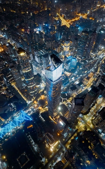 夜幕来临,当我爬上300米的高楼 把无人机飞到了500米,拍到了 800米下的广州 Cbd 夜景。