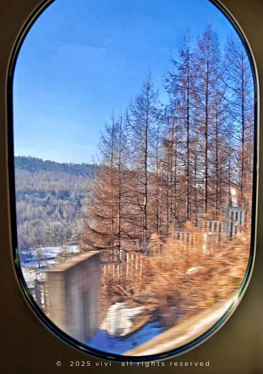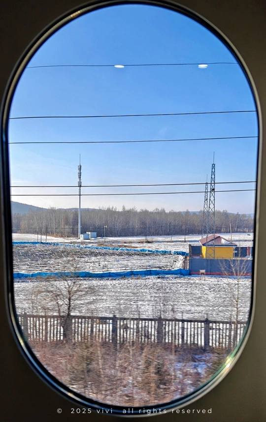 飞驰的列车,车窗便是取景框,将冬日的黑土地一一纳入眼帘,东北大地的深沉辽阔,映衬着雪的洁白,共谱出一曲美妙的冬日之歌。