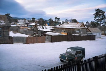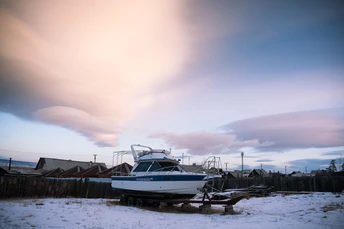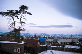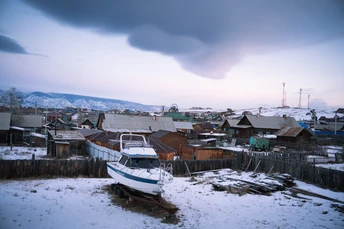 来到奥利洪岛时已经天黑了,匆匆地吃饭睡觉了。旅馆的名字叫“白熊”,给人一种可以窝在洞里,很温暖的感受,高纬度的夜晚就是长,一觉就睡了十来个小时,拉开窗帘天还只是蒙蒙亮。这才看清院子里有老板自己的船,远处的村庄都是木质结构,灰色棕色交织,但活泼地点缀着一串串的灯串,炊烟在村庄上方飘着,空气凛冽又清新,荚状云大朵地飘过去又随着朝阳散开了。