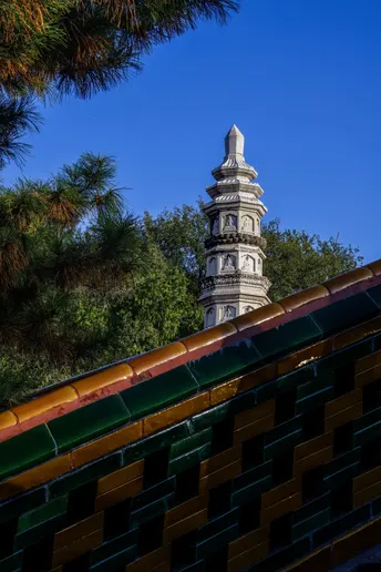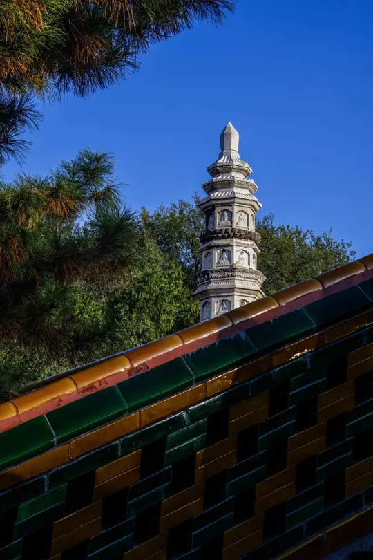 颐和胜境,双塔流芳。东塔巍峨,耸云霄而昭瑞;石幢精美,蕴禅意以呈祥。塔身雕镂,展匠人之巧艺;佛刻庄严,显梵境之安祥。琉璃为瓦,焕彩光于晴日;翠柏作邻,映葱茏于画框。墙垣错落,添古园之韵致;光影徘徊,增雅景之辉光。凭栏以望,感岁月之悠邈;凝思于此,叹风华之未央。斯东塔也,静立园中,若历史之诗章,传千载之清响,引游人之遐思,抒幽怀之浩旷。