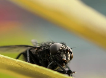 在微观世界里,苍蝇也是独特的存在。瞧它那大大的复眼,细密的绒毛,于叶片上定格瞬间,展现着大自然造物的奇妙 。