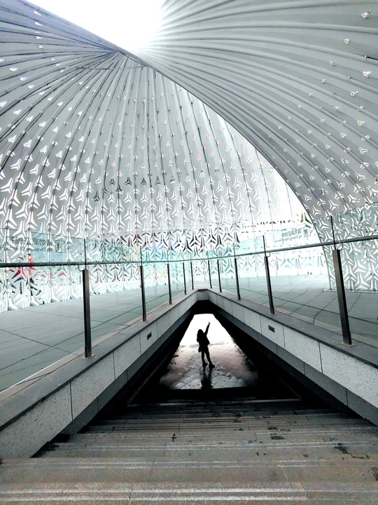 位于重庆渝北附近的鹦鹉螺,独特的弧形屋顶,上面布满了飞机形状的镂空图案,阳光透过洒下,光影交错,氛围感直接拉满。底下站着的人仿佛置身于梦幻空间!