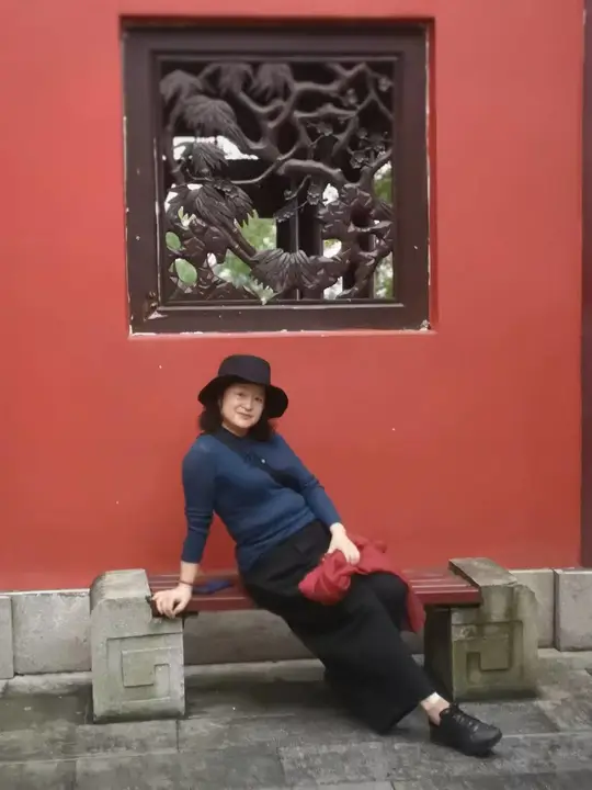 最近发现了一个超有韵味的拍照地!在鸿恩寺公园内,一面鲜艳的红墙,搭配着古色古香的雕花窗,满满的中式氛围感。 坐在红墙下的长椅上,随便一拍都很出片~就像这位姐姐,一顶黑色帽子、一件蓝色上衣搭配黑色长裤,手持红色的围巾,和红墙的颜色相互呼应,时尚又复古。