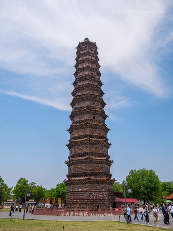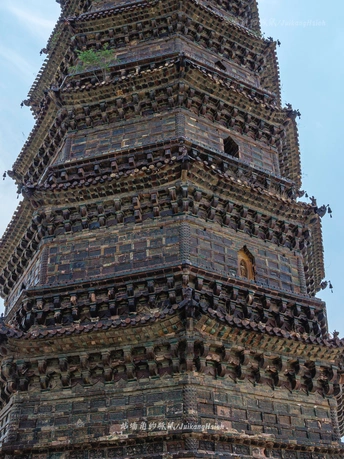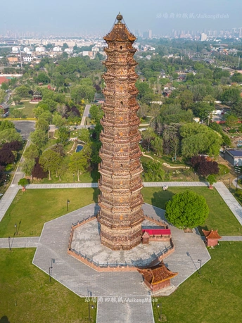 在开封的古城中,伫立着一座历经千年风雨的铁塔,像一位沉默的守望者,见证了时代的更替与岁月的流转。这座塔,曾因其宏伟与精美,成为古都的象征,依旧矗立在城市的天际线之上,宛如一颗镶嵌在历史长河中的明珠。 铁塔并非因为它的名字而引人注目,而是因为它独特的建筑风格。它的塔身由琉璃砖砌成,每一块砖上都雕刻着生动的图案——飞天、龙凤、云纹、宝相花……每一块砖仿佛都是一件精致的艺术品,精工细作,光影流转间,它们散发出璀璨的光芒。尤其是在阳光的照射下,塔身闪耀着琉璃的光辉,仿佛一位穿越千年的女神,静静地诉说着历史的故事。 这座铁塔与周围的古建筑不同,它没有唐代塔的柔美曲线,也没有金塔的宏伟气势,但它那挺拔有力的身姿,却给人一种不同寻常的震撼感。塔身的每一层,都被巧妙地设计成八角形,随着塔身逐渐收拢,层层递进,犹如一座通向天际的阶梯。每一层塔檐上方,都装饰着精致的斗拱,仿佛在诉说着宋代工匠的巧思与匠心。 站在塔下,仰望那屹立千年的铁塔,仿佛能感受到历史的脉动与岁月的呼吸。它不仅是开封的标志,也是中国古代建筑艺术的瑰宝,见证着宋代的辉煌与智慧。穿越千年,铁塔依旧矗立在风中,静静诉说着属于它的故事。