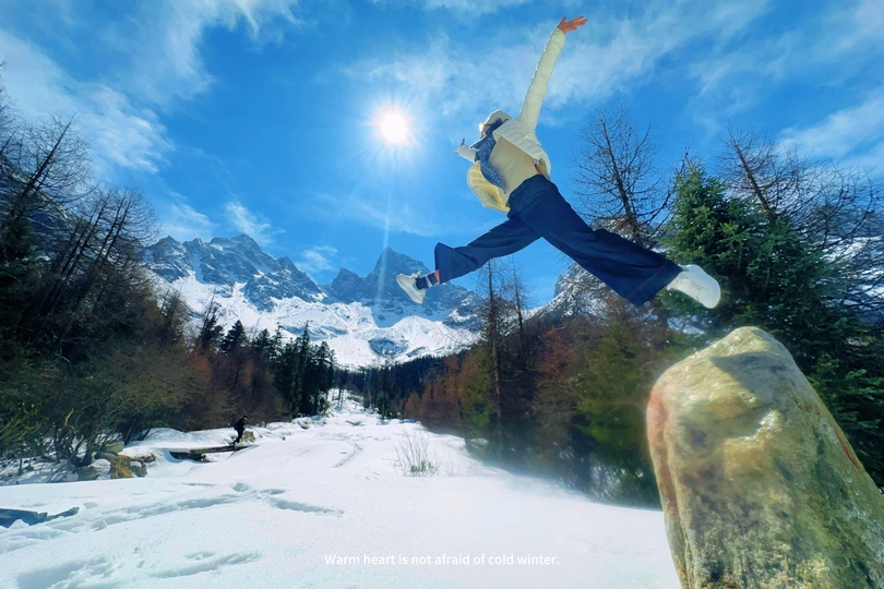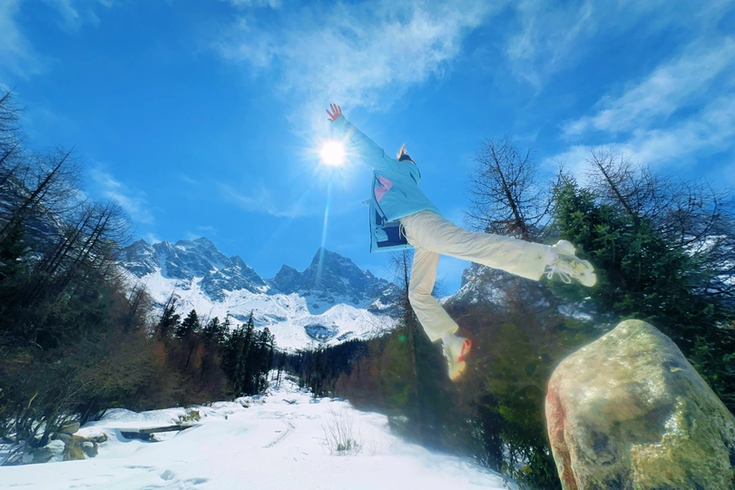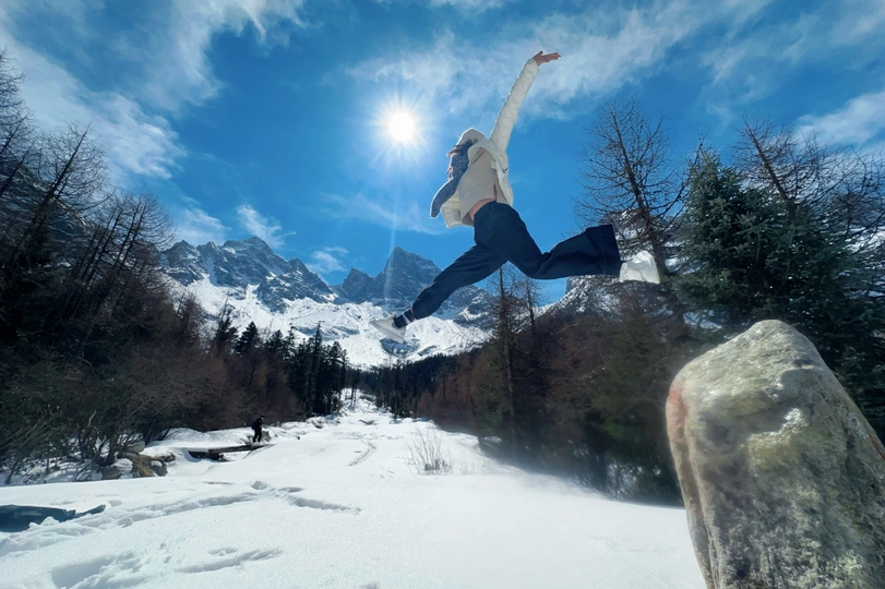 很久没有上传作品,这次用手机拍两个朋友来一组腾空找,时而像夸父追日,时而又像乔丹灌篮,不得不说,毕棚沟的雪景是真的美