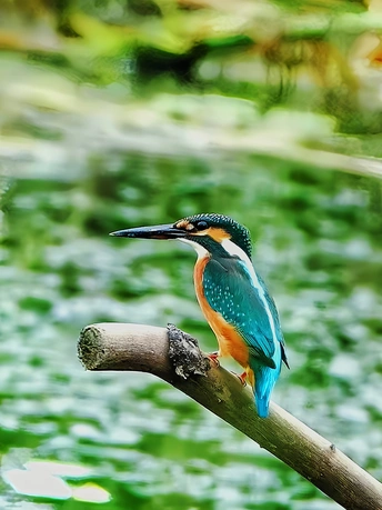 在成都人民公园里喝坝坝茶,旁边小湖边出现翠鸟,不时的扎入水里叼鱼,画面中的情景是在树杆上,等待鱼儿露头时分。那闪亮的眼神,绿色的羽毛,橙色的腹毛,好看的小精灵。