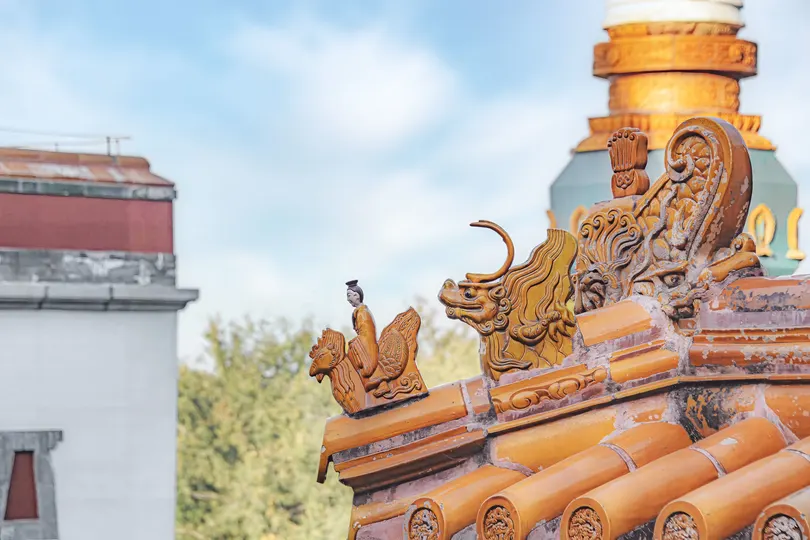 《菩萨蛮·檐端瑞兽》 檐端瑞兽姿容俏,金鳞彩羽祥云绕。岁月刻痕留,犹彰昔日遒。 风烟经几朝,浩气仍难了。凝目对苍穹,千年兴废中。
