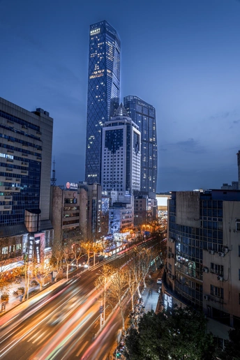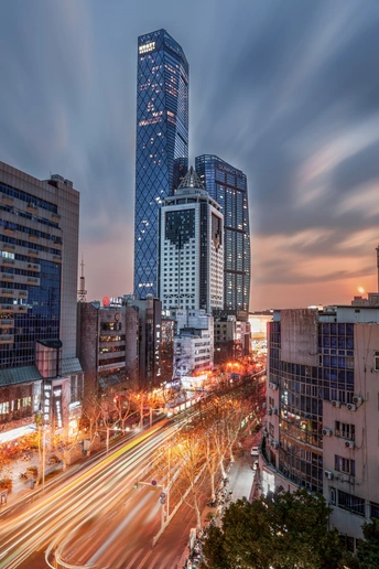 蓝调时刻的镇江苏宁广场照片 拍摄于日出前或日落后,天空呈静谧深蓝色,光线柔和。苏宁广场建筑线条清晰,双塔与裙房错落有致,在蓝调映衬下雄伟壮观,营造出宁静浪漫氛围,尽显独特魅力。 运用时间合成技术的镇江苏宁广场照片 时间合成技术融合不同时刻画面。照片把白天广场的热闹和夜晚的灯光秀组合,或是合成不同时段天空景象,打破时间限制,带来新奇视觉体验,艺术感拉满 。