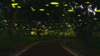黑暗中发光的小精灵,静静的在树林里飞舞。