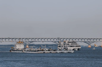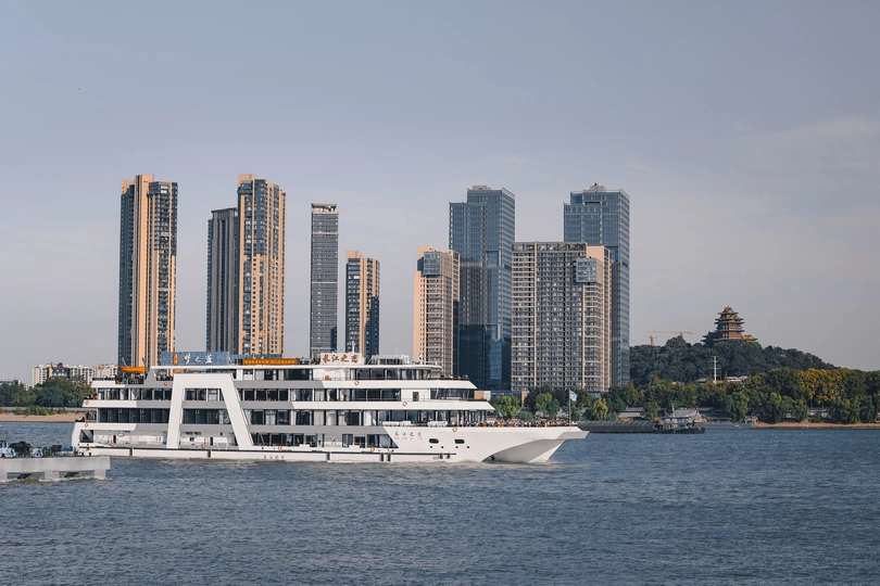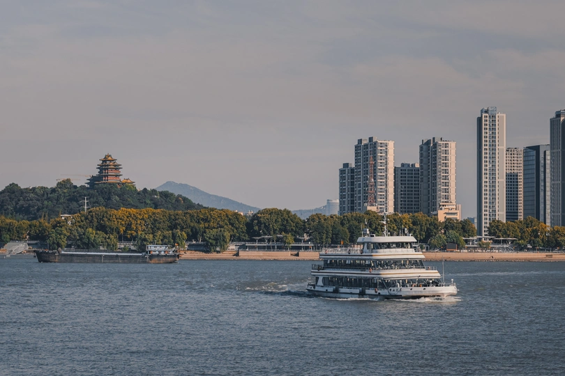 在南京长江大桥之畔,目及游船悠游江面,现代楼宇与古韵楼阁遥相对望。 江水滔滔,流淌着城市的故事,每一次凝视,都是与历史和未来的对话 。