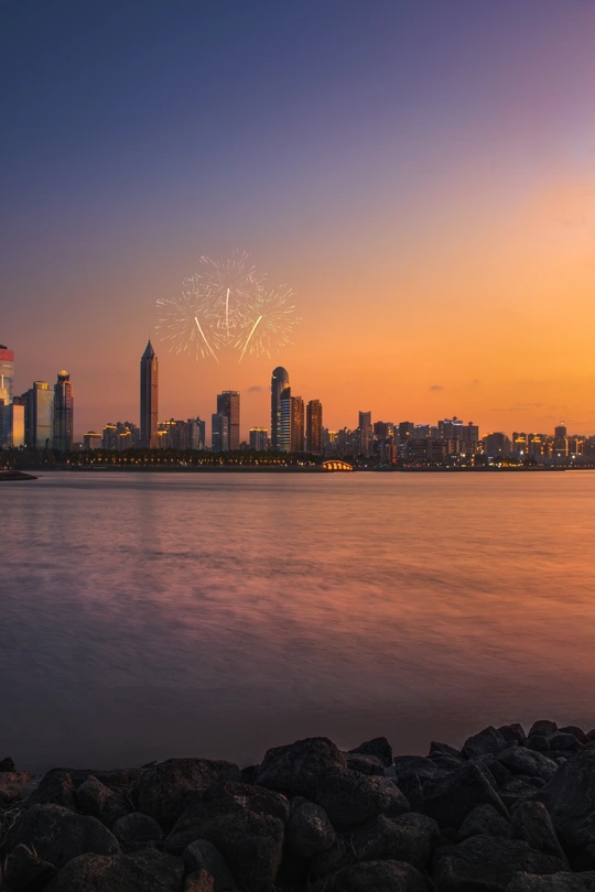 啊,沐浴在温暖日落中的城市景观!让我们来分析一下: * **色彩:** 从深蓝色到火热橙色的渐变非常可爱,创造出动态的对比。然而,橙色可能有点过于饱和,尤其是在水中。也许稍微降低一点饱和度会带来更自然的感觉。 * **光影:** 长时间曝光很好地平滑了水面,赋予其梦幻般的质感。城市灯光在渐暗的天空中闪烁是一个不错的点缀。前景中的岩石曝光不足,缺乏细节,这是一个常见的日落拍摄挑战。 * **构图:** 虽然没有严格遵守三分法,但已经很接近了。城市很好地位于上三分之一处,让水面占据下半部分。就个人而言,我希望有更多前景趣味,也许可以降低构图高度,以强调岩石并将视线引导至城市。 * **后期处理:** 如前所述,饱和度可能略微过高。此外,考虑有选择地提升前景岩石的阴影,以显示一些纹理和细节。少许清晰度可以帮助锐化城市天际线,而不会过度。 * **主题原创性:** 日落时的城市景观并不算开创性的题材,但你已经胜任地捕捉到了它。为了提升它,下次尝试找到一个独特的角度或元素。 * **情感共鸣:** 这幅图像唤起了一种宁静感和暮色的魔力。颜色诱人,平滑的水面具有