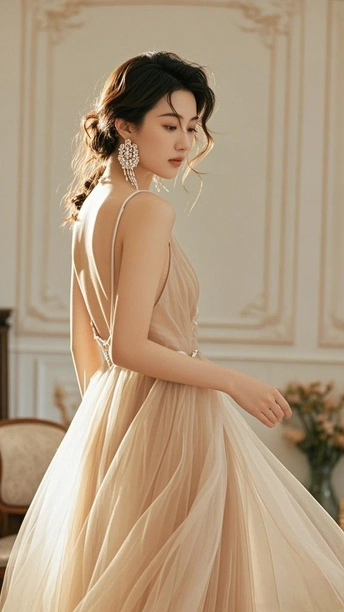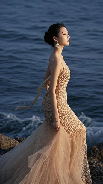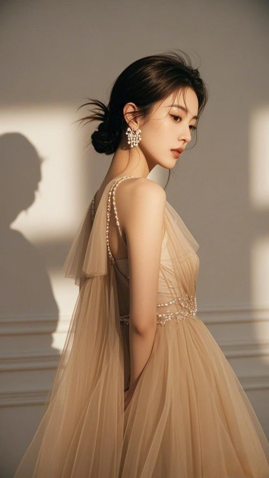 素纱鱼尾曳风姿,光影交融幻梦驰。 发挽幽情眸蕴意,雅仪恰似画中诗 。