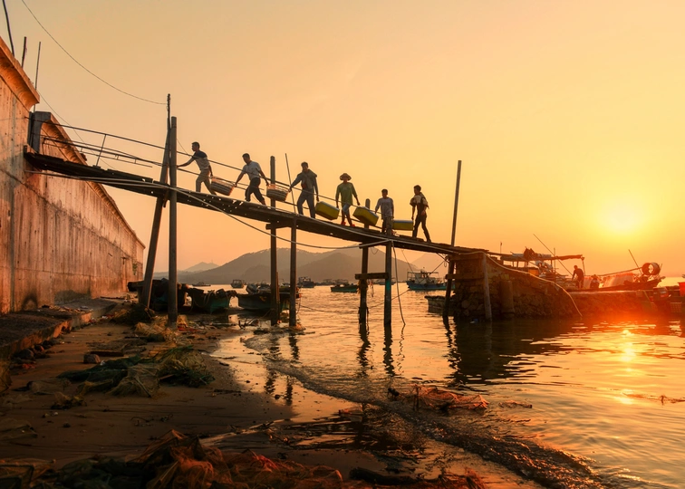 夕阳如金黄,鱼儿归满框。