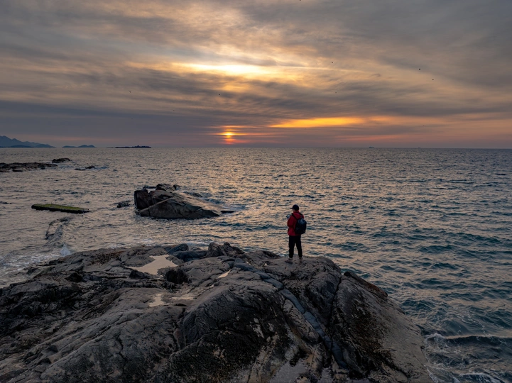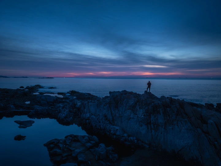 暮色为海披上渐变纱衣,霞光在天际晕染诗意