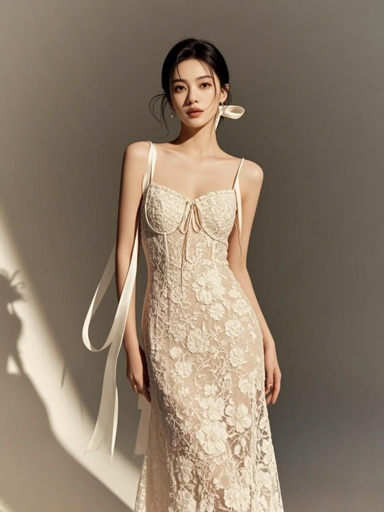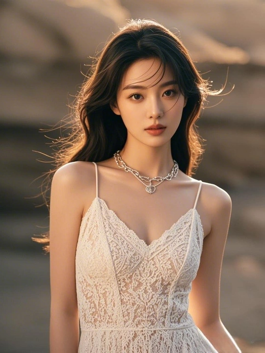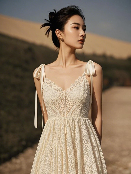 阳光,在发梢跳荡 白色吊带裙,似云朵轻降 蕾丝钩织的幻网 网住了,一整个烂漫时光 V领勾勒的弧度 藏着无声的温柔私语 项链如星子坠落 点亮,这静谧的美丽领地 每一根线条,每一处镂空 都是灵魂的低吟浅诵 在光影的舞台 我,是自己的永恒美梦