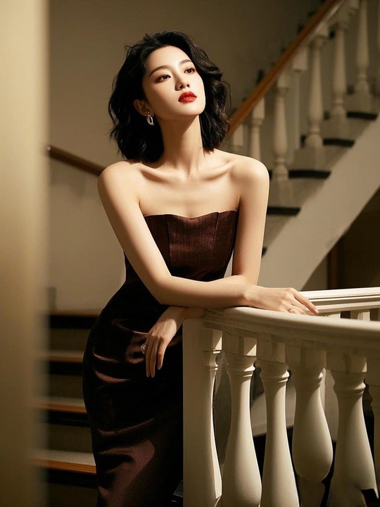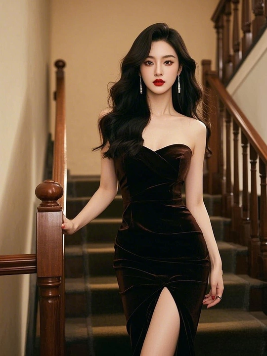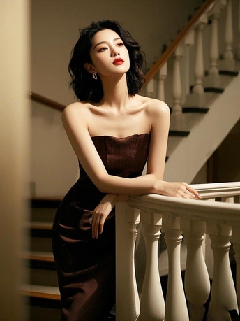 在楼梯的光影交错里 你如一朵悄然绽放的玫瑰 丝绒的裙 裹着梦的深邃 开衩间 是藏不住的明媚 风 轻轻撩动你的发丝 似在诉说 时光的情诗 唇间的红 是火焰的放肆 燃烧在 这静谧的阶梯 每一步 踏响心跳的节奏 每一眼 都有故事在流 在这转角的温柔 你是独属的 璀璨星斗