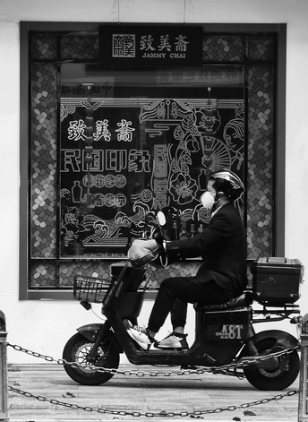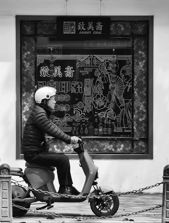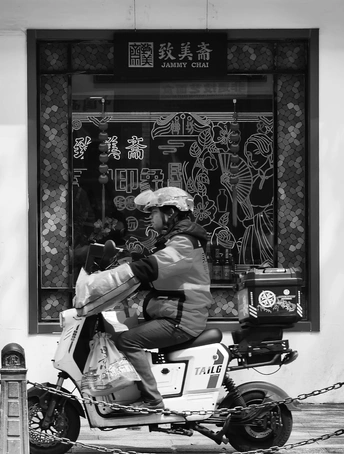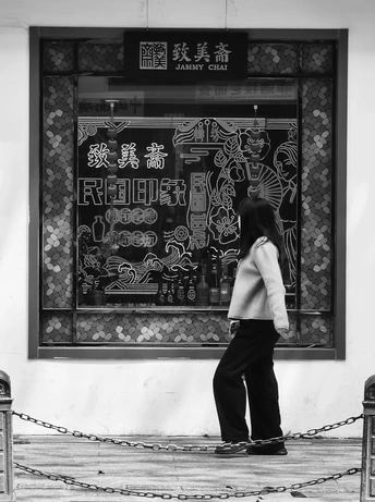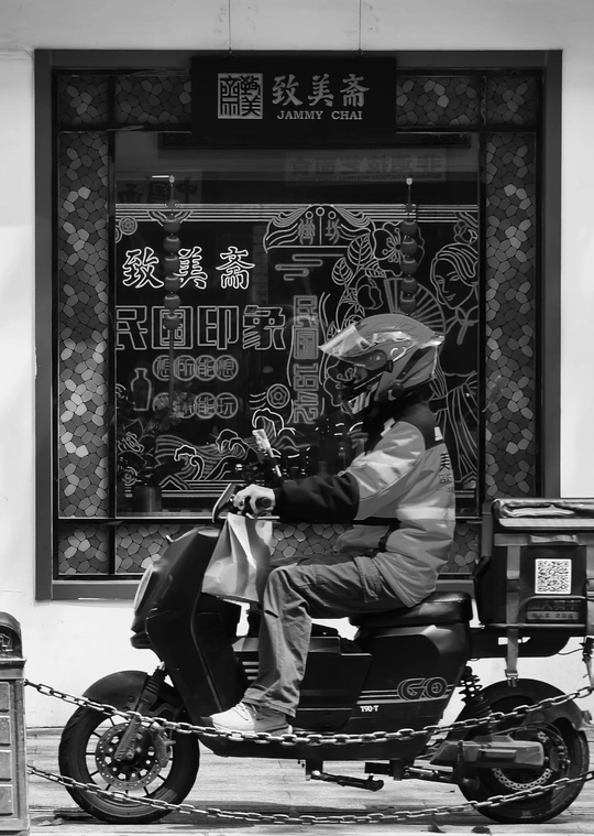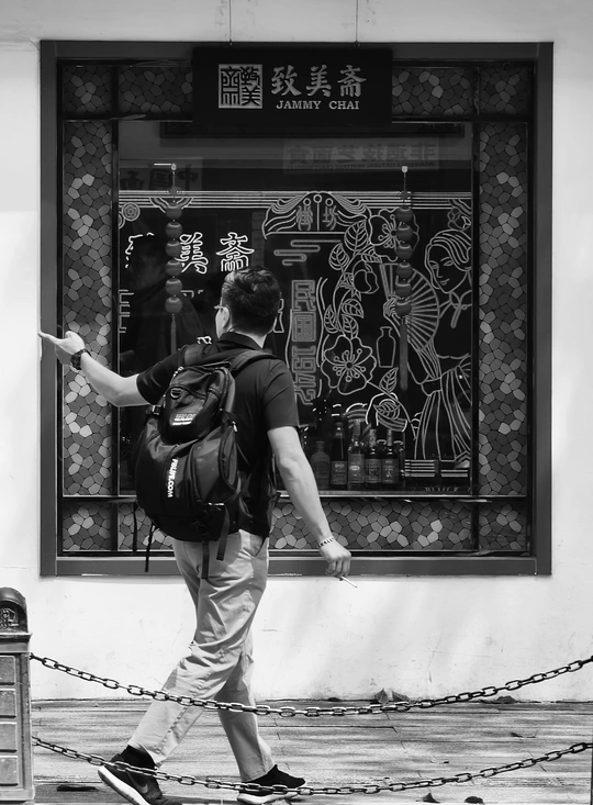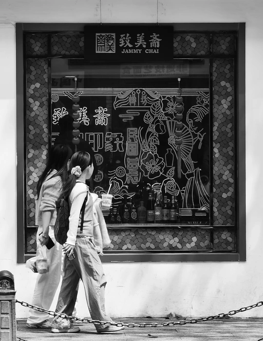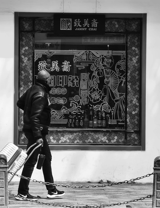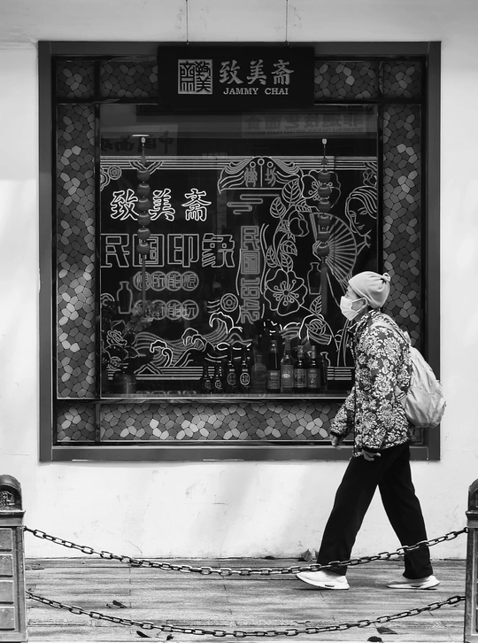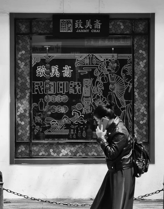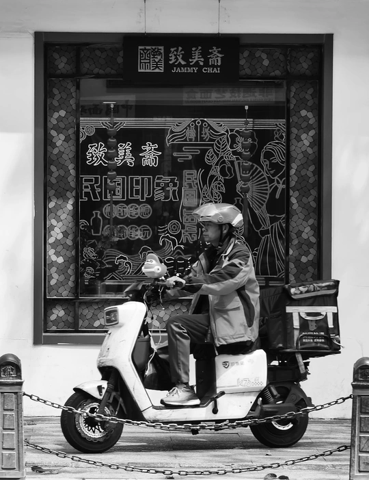 致美斋前,时光仿佛慢了下来。不同的行人匆匆而过,有人骑行奔赴,有人并肩相伴,有人低头沉思,每一个身影,都诉说着属于自己的故事 。