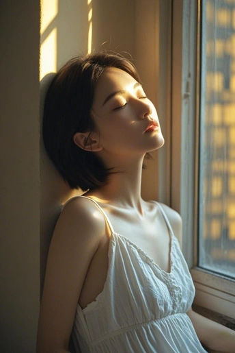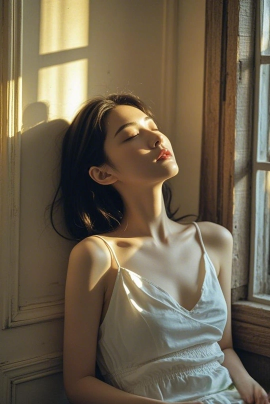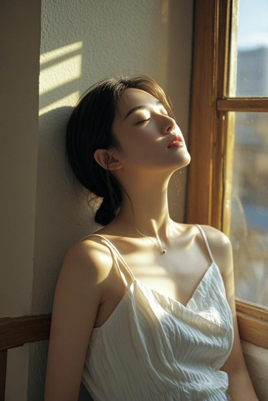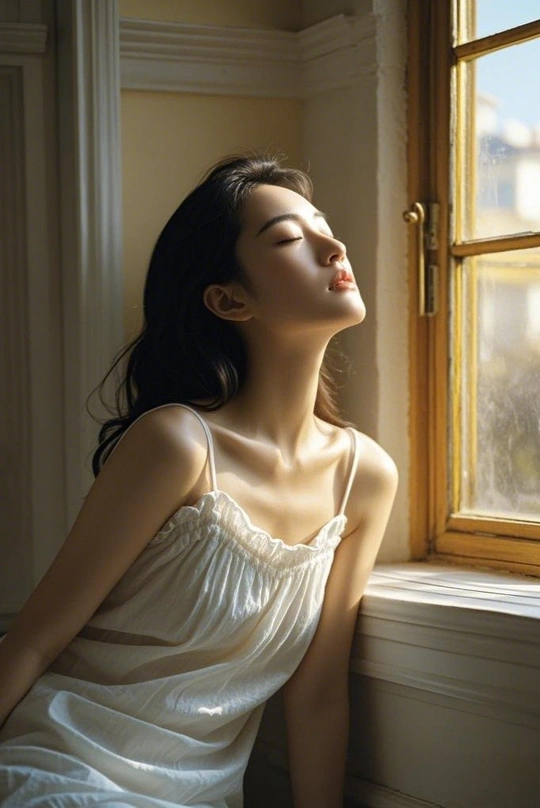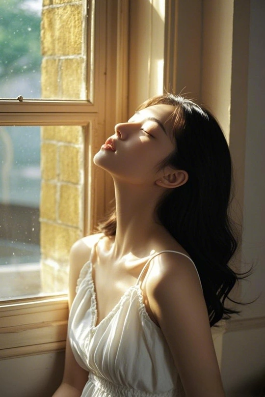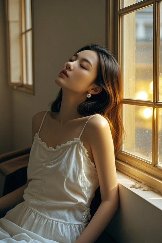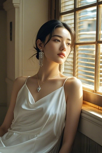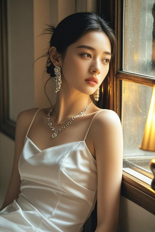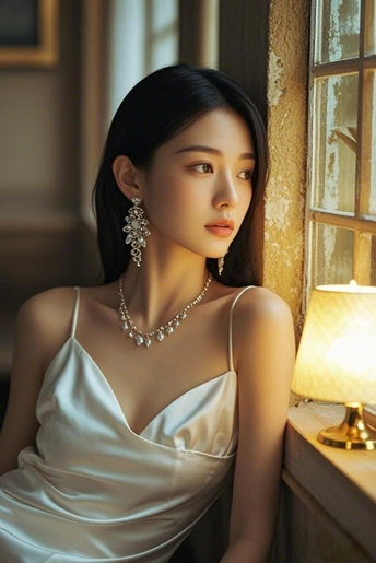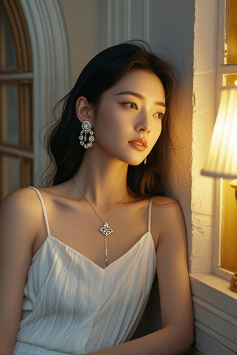 在旧窗的光影里 她如一幅静谧的画 耳坠轻晃,似梦的铃响 项链缀着星芒,与思绪碰撞 那盏暖灯,晕开时光 眼眸望向远方 故事在心底生长 在这一方角落,独自绽放