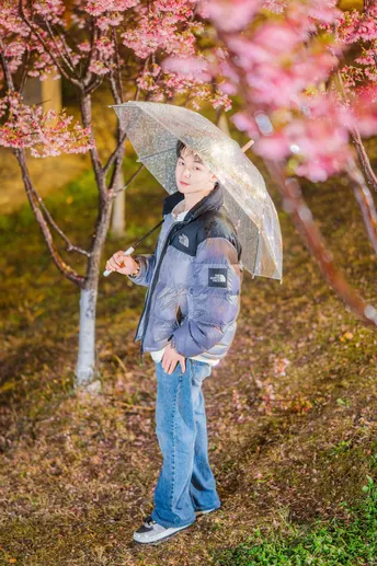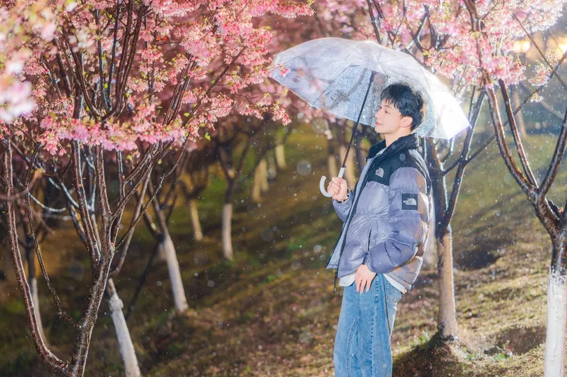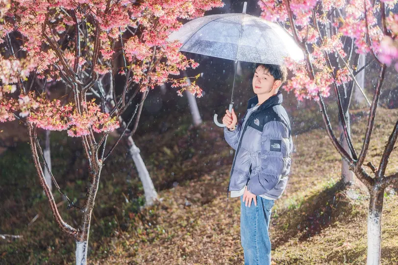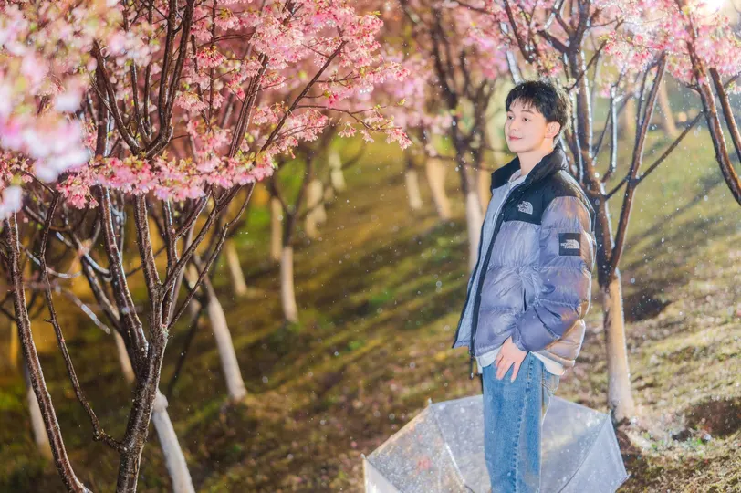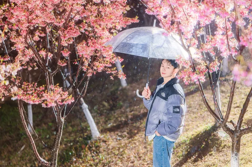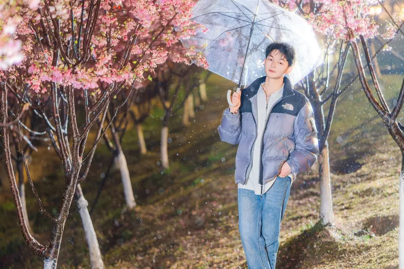 所有坠落的都在上升—— 雨珠是倒飞的流星 樱花是地面长出的粉色极光 而他站在重力失效的奇点