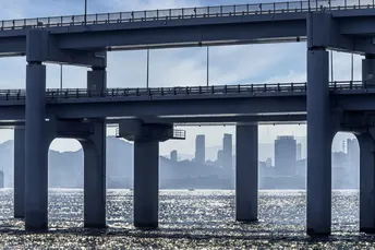 在大连的星海湾,跨海大桥以它坚实的姿态矗立在海面之上。粗壮的桥墩如同巨人的脊梁,稳稳托起桥面,承载着无数车辆与行人的来来往往。 透过桥墩的间隙望去,阳光洒在波光粼粼的海面上,闪烁着细碎的光芒,似无数颗钻石在舞动。远处,城市的轮廓在薄雾中若隐若现,高楼大厦错落有致,勾勒出这座城市的繁华与活力。 这座大桥不仅是交通的纽带,更是城市与海洋对话的桥梁。它见证着大连的发展与变迁,在岁月的长河中,静静诉说着属于这座海滨城市的故事,成为人们心中一道永恒的风景。