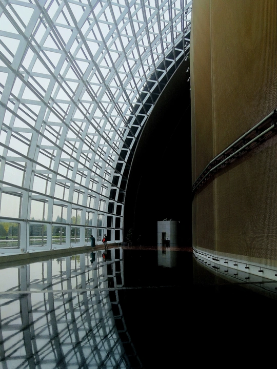 高挑的拱型樑,线条非常优美;巨大的玻璃幕墙,质感非常通透。气势恢宏,十分壮观!