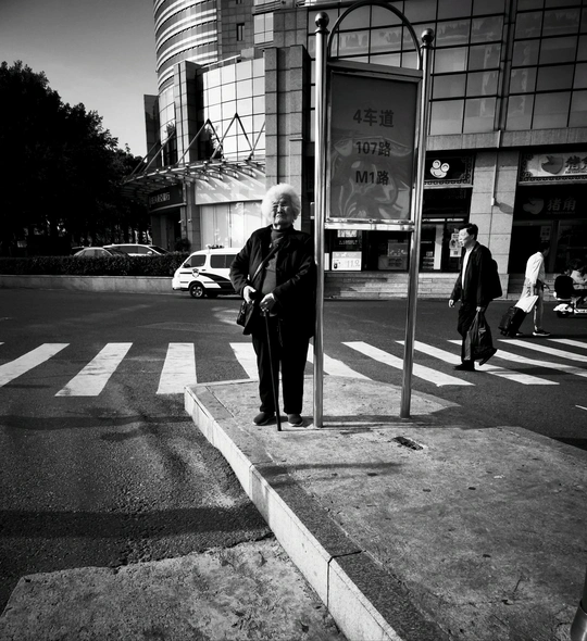 在厦门扫街时看到一位老妇人在等公交车,赶紧拿起手机拍了一张